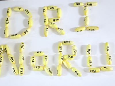 बाेतल से निकले 50 पीले रंग के सीलबंद कैप्सूल