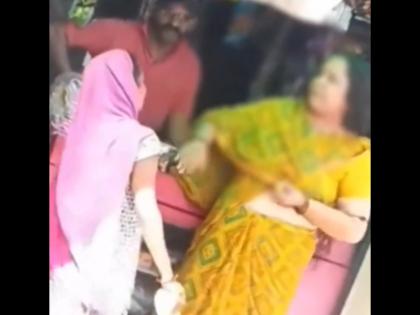 वीडियो में देखा जा सकता है कि एक महिला दूसरी महिला को बार-बार थप्पड़ मार रही है, जबकि दुकान के काउंटर पर खड़ा एक आदमी चुपचाप यह सब देख रहा है।